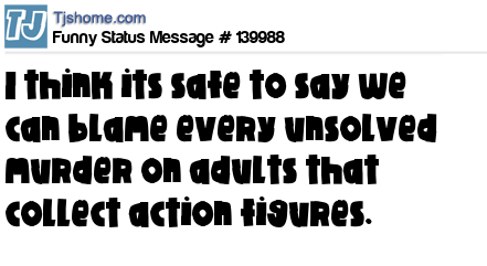 X says I think its safe to say we can blame every unsolved murder on adults that collect action figures.