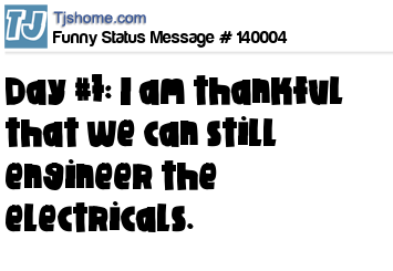 X says Day #7: I am thankful that we can still engineer the electricals.