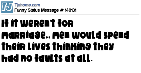 - # 167081 If it weren't for marriage, many of us would go thru life thinking we had no faults at all.