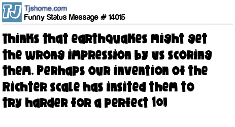 X thinks that earthquakes might get the wrong impression by us scoring them. Perhaps our invention of the Richter scale has insited them to try harder for a perfect 10!