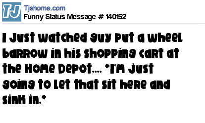 X I Just watched guy put a wheel barrow in his shopping cart at the Home Depot.... *I'm just going to let that sit here and sink in.*