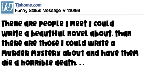 X says There are people I meet I could write a beautiful novel about, than there are those I could write a murder mystery about and have them die a horrible death. . .