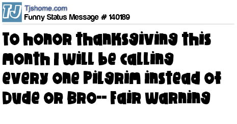 X says to honor thanksgiving this month I will be calling every one Pilgrim instead of Dude or Bro-- Fair warning