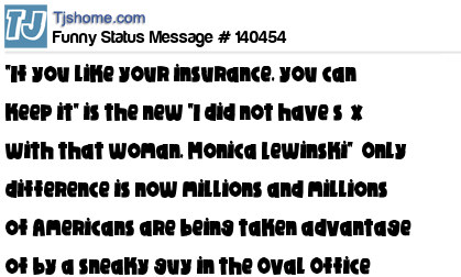 X "If you like your insurance, you can keep it" is the new "I did not have sεx with that woman, Monica Lewinski" Only difference is now millions and millions of Americans are being taken advantage of by a sneaky guy in the Oval Office ...