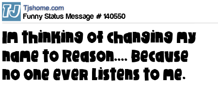 X says Im thinking of changing my name to Reason.... Because no one ever listens to me.