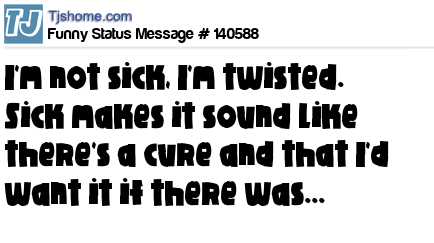 - # 121140 I'm not sick, I'm twisted. Sick makes it sound like there's a cure...