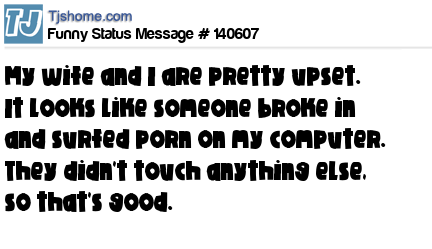 X says My wife and I are pretty upset. It looks like someone broke in and surfed porn on my computer. They didn't touch anything else, so that's good.