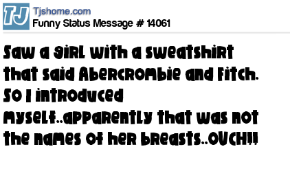 X saw a girl with a sweatshirt that said Abercrombie and Fitch. So I introduced myself..apparently that was not the names of her breasts..OUCH!!