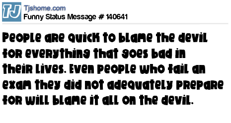 X says People are quick to blame the devil for everything that goes bad in their lives. Even people who fail an exam they did not adequately prepare for will blame it all on the devil.