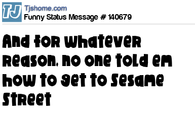 - # 105084 I'm still kind of pissed they never told us how to get to Sesame Street.