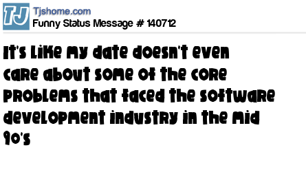 X says It's like my date doesn't even care about some of the core problems that faced the software development industry in the mid 90's