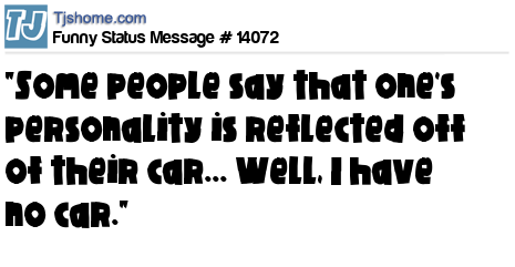 X says "Some people say that one's personality is reflected off of their car... Well, I have no car."