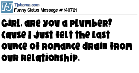 X says Girl, are you a plumber? Cause I just felt the last ounce of romance drain from our relationship.