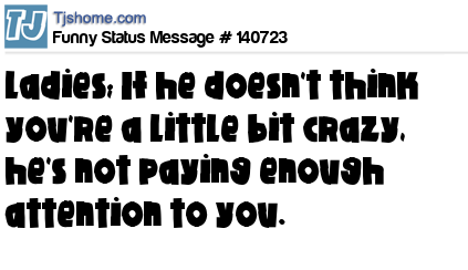 X says Ladies; If he doesn't think you're a little bit crazy, he's not paying enough attention to you.
