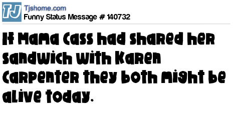 - # 151767 If Mama Cass had shared her sandwich with Karen Carpenter, they both might be alive today.