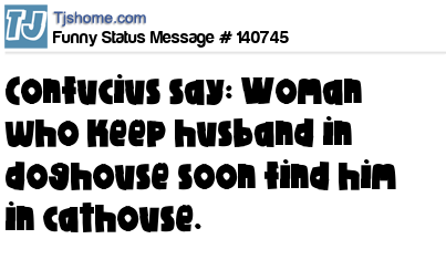 - # 166214 Confucius say, "Woman who keep husband in dog house soon find him in cat house."