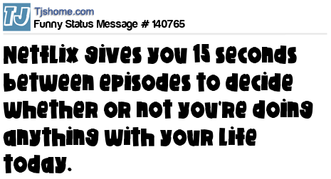 X says Netflix gives you 15 seconds between episodes to decide whether or not you're doing anything with your life today.