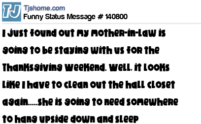 X says I just found out my mother-in-law is going to be staying with us for the Thanksgiving Weekend. Well, it looks like I have to clean out the hall closet again.....she is going to need somewhere to hang upside down and sleep