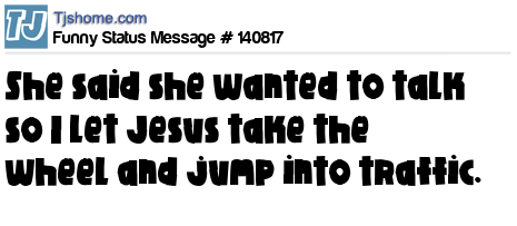 X says She said she wanted to talk so I let Jesus take the wheel and jump into traffic.