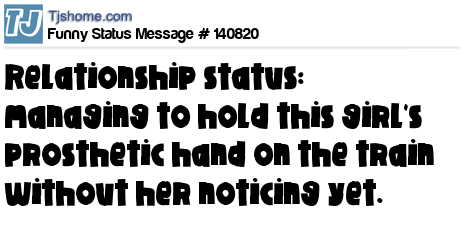 X says Relationship status: managing to hold this girl's prosthetic hand on the train without her noticing yet.