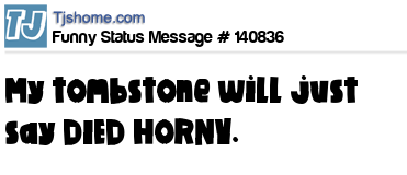 - # 62935 never seen a tombstone that read: "Died from not forwarding that text to ten friends."