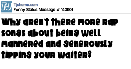 X says Why aren't there more rap songs about being well mannered and generously tipping your waiter?