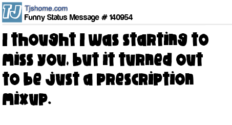 X says I thought I was starting to miss you, but it turned out to be just a prescription mixup.