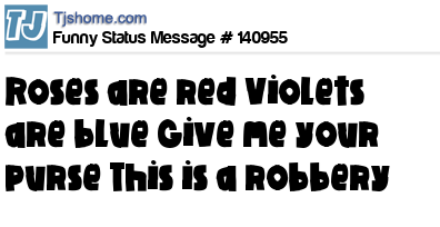 X says Roses are red Violets are blue Give me your purse This is a robbery