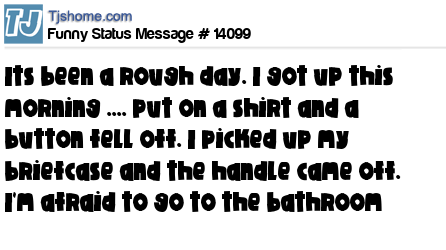 - # 3719 says it's been a rough day. I got up this morning .... put on a shirt and a button fell off. I picked up my briefcase and the handle came off. I'm afraid to go to the bathroom....