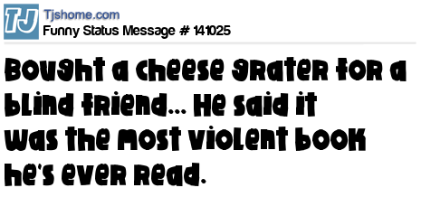 X Bought a cheese grater for a blind friend... He said it was the most violent book he's ever read.