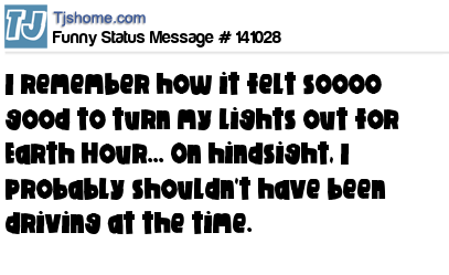 - # 179162 I remember how it felt so good to turn my lights out for Earth Hour... On hindsight, I probably shouldn't have been driving at the time.