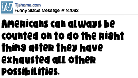 - # 181007 "Americans can always be counted on to do the right thing...after they have exhausted all other possibilities." ~ Winston Churchill