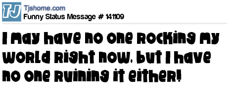 X says I may have no one rocking my world right now, but I have no one ruining it either!