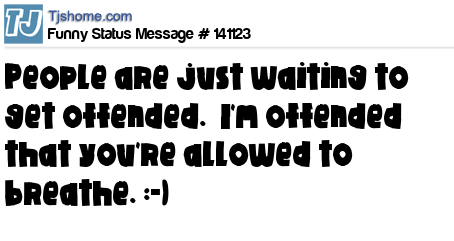 X says People are just waiting to get offended. I'm offended that you're allowed to breathe. :-)