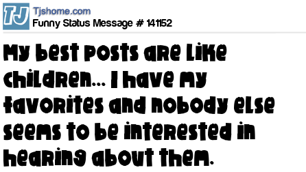 X My best posts are like children... I have my favorites and nobody else seems to be interested in hearing about them.