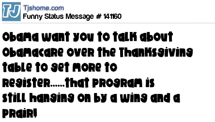 X says Obama want you to talk about Obamacare over the Thanksgiving table to get more to register......that program is still hanging on by a wing and a prair!
