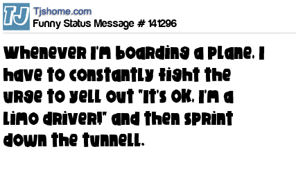X Whenever I'm boarding a plane, I have to constantly fight the urge to yell out "It's OK, I'm a limo driver!" and then sprint down the tunnell.