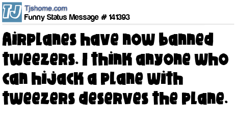 X says Airplanes have now banned tweezers. I think anyone who can hijack a plane with tweezers deserves the plane.