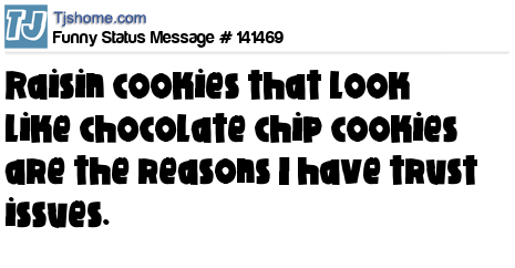 X says Raisin cookies that look like chocolate chip cookies are the reasons I have trust issues.