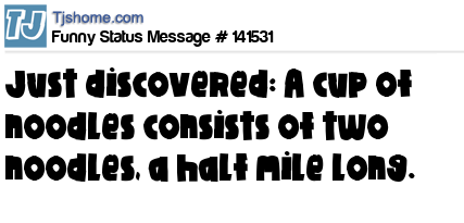 X Just discovered: A cup of noodles consists of two noodles, a half mile long.