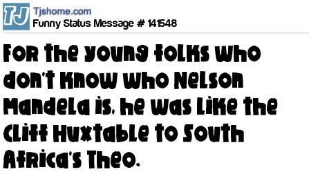 X For the young folks who don't know who Nelson Mandela is, he was like the Cliff Huxtable to South Africa's Theo.