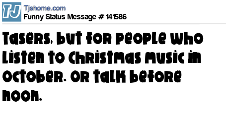 X says Tasers, but for people who listen to Christmas music in October. Or talk before noon.