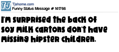 X says I'm surprised the back of soy milk cartons don't have missing hipster children.