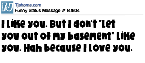 X says I like you. But I don't "let you out of my basement" like you. Hah because I love you.
