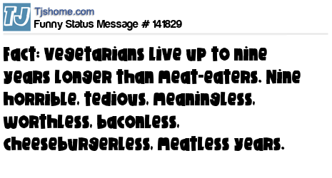 X Fact: Vegetarians live up to nine years longer than meat-eaters. Nine horrible, tedious, meaningless, worthless, baconless, cheeseburgerless, meatless years.