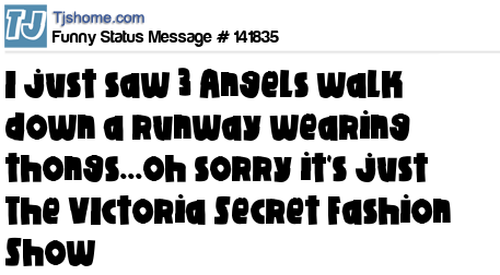 X says I just saw 3 Angels walk down a runway wearing thongs...oh sorry it's just The VIctoria Secret Fashion Show