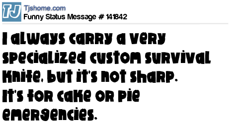 X I always carry a very specialized custom survival knife, but it's not sharp. It's for cake or pie emergencies.