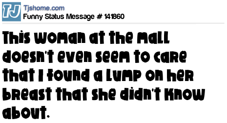 X says This woman at the mall doesn't even seem to care that I found a lump on her breast that she didn't know about.