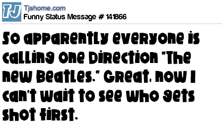 X So apparently everyone is calling One Direction "The new Beatles." Great, now I can't wait to see who gets shot first.