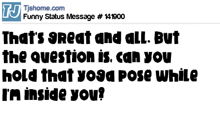X says That's great and all. But the question is, can you hold that yoga pose while I'm inside you?